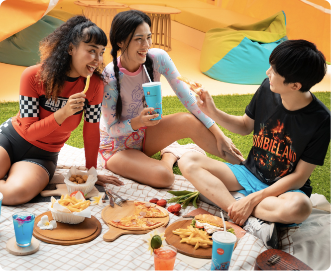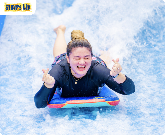 ของดียังไม่หมด! สัมผัสประสบการณ์แอคชั่นที่น่าตื่นเต้นในโซน Zombieland ที่ซึ่งคุณจะต้องคว้าแมทพุ่งลงตามรางสไลเดอร์ ทิ้งดิ่งผ่านม่านน้ำหนีเจ้าซอมบี้ตัวตลกสุดสยอง หรือลองโชว์ทักษะการโต้คลื่นของคุณบนเครื่องเล่น Flowrider ในโซน Surf’s Up ไปกับ Cody Maverick และผองเพื่อนนกเพนกวิน